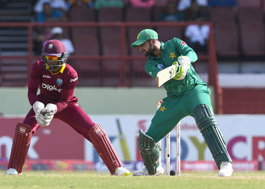 Junaid Khan, who had accounted for Evin Lewis at the start of the innings, returned to separate the pair of Hope and Mohammed, having the latter caught at the wicket. Hope fell to Shadab Khan via a catch at long-on, although the leg-spinner endured the most expensive effort of his young international career, conceding 57 runs off eight overs.