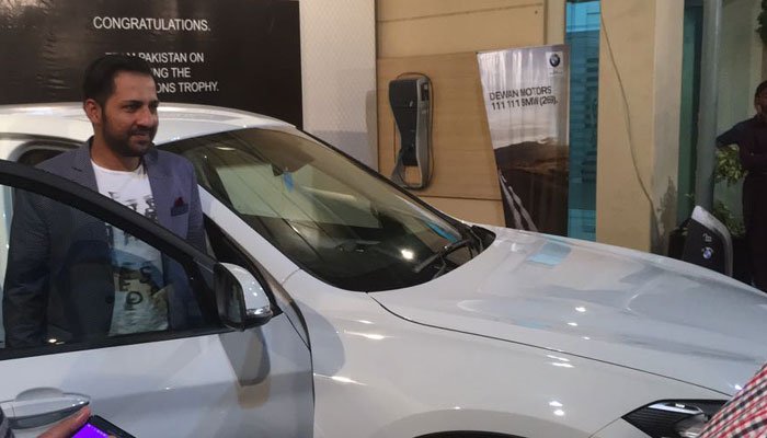 KARACHI (Dunya News) – Following the mind-blowing win against old-rival India in the ICC Champions Trophy final, skipper Sarfraz Ahmed has been handed over the keys of BMW XI by a private bank and motor company.