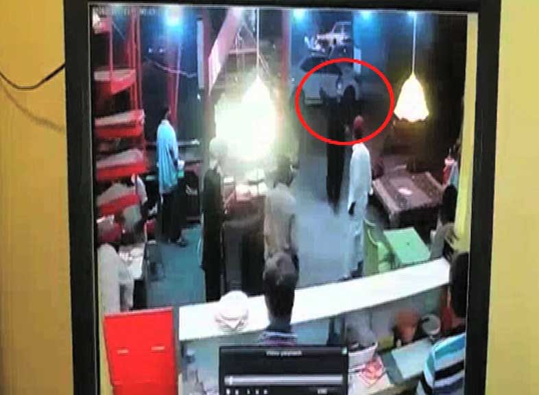 Dunya News has obtained CCTV footage of the incident in which, it was clearly shown that as many as six thieves stormed the food center and robbed mobile phones and cash from 10 people.