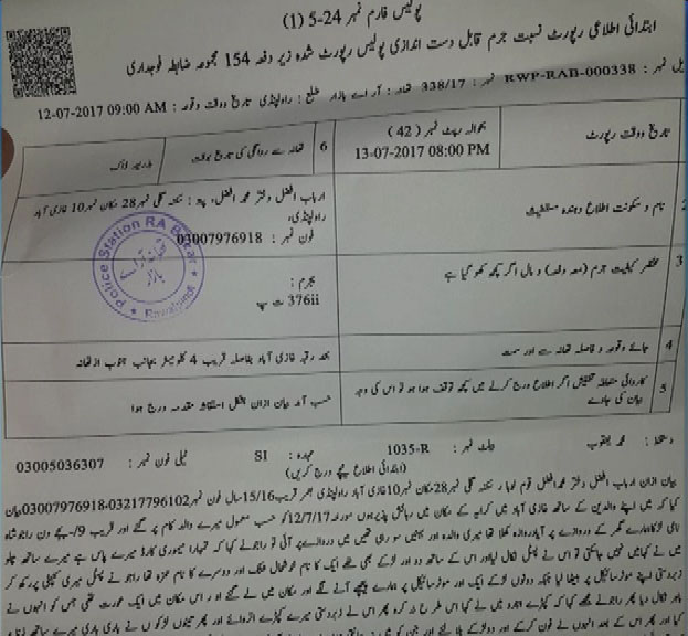 Case registered against five gang rape suspects in Rawalpindi