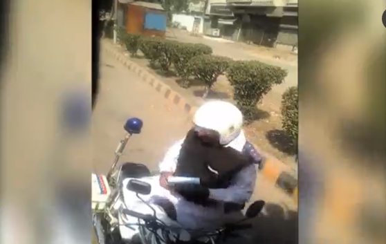 KARACHI (Dunya News) – A traffic policeman was caught red handed on camera while taking bribe from the bus driver who violated traffic rules in Karachi.