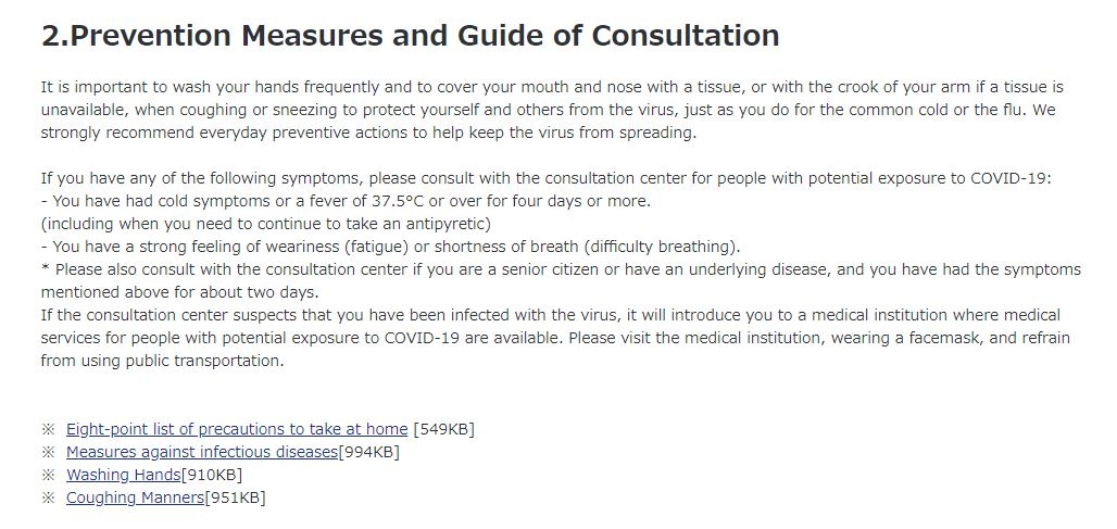 In the “About Coronavirus Disease 2019 (COVID-19)” section of its website, the ministry lists washing hands frequently and covering mouth and nose when coughing or sneezing as “everyday preventive actions” to take.