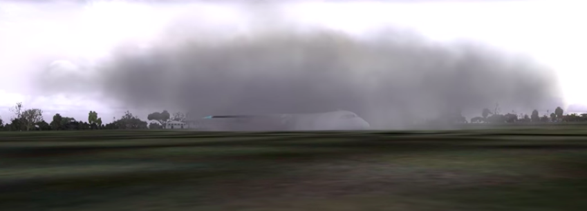 This screenshot from the video shows parts of the PIA plane appearing to sink into the ground upon contact, leaving no damage to the lawn. This would not be possible in a real-life event.