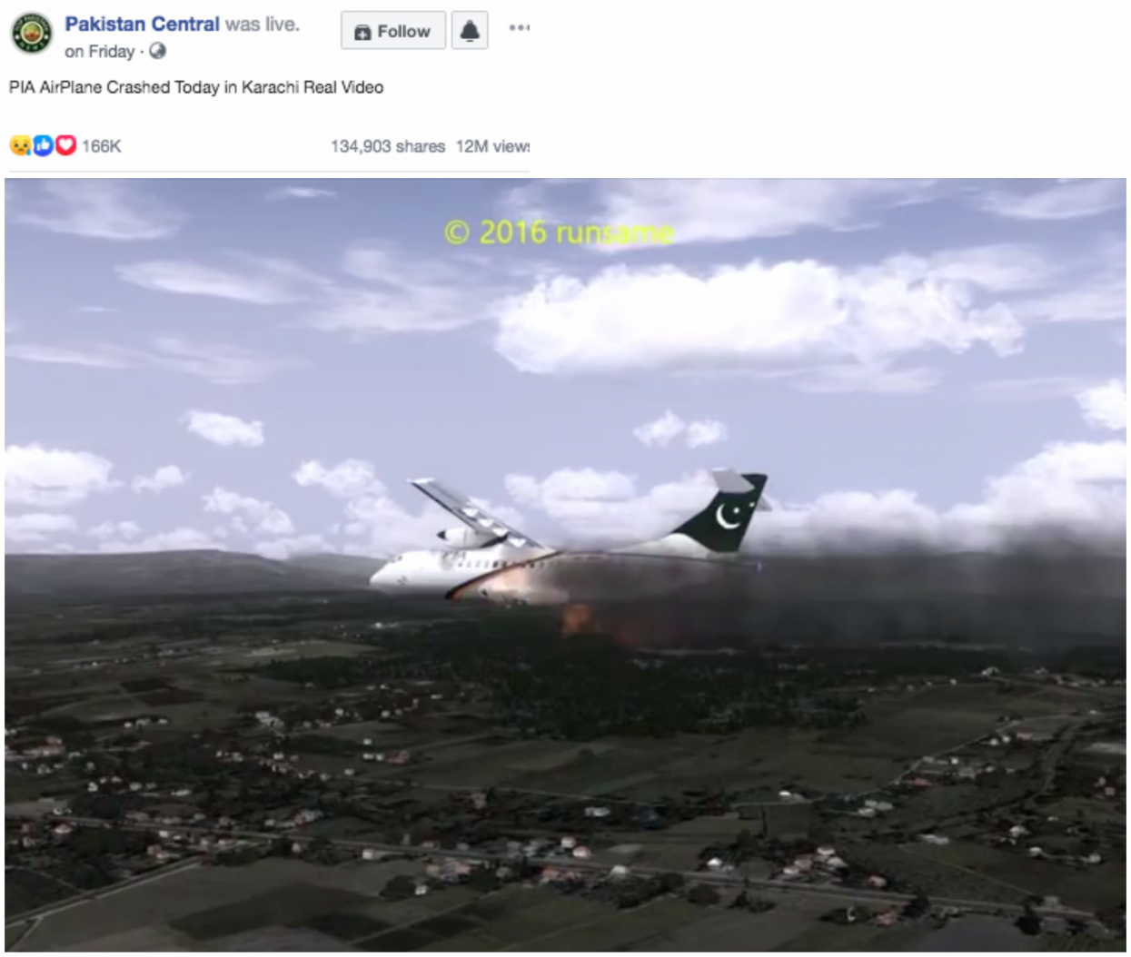 (AFP) - A video has been viewed millions of times in multiple posts on Facebook which claim it is “real” clip of the Pakistan International Airlines plane crash that claimed scores of lives in the city of Karachi on May 22, 2020. The claim is false; the video was created using a flight simulator programme.