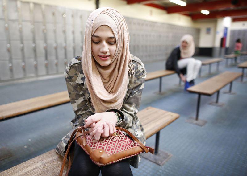 Sanaa, 10, and her sister Israa, 7, study in Islamic Saturday School. Sanaa used to go to the school wearing Hijab.