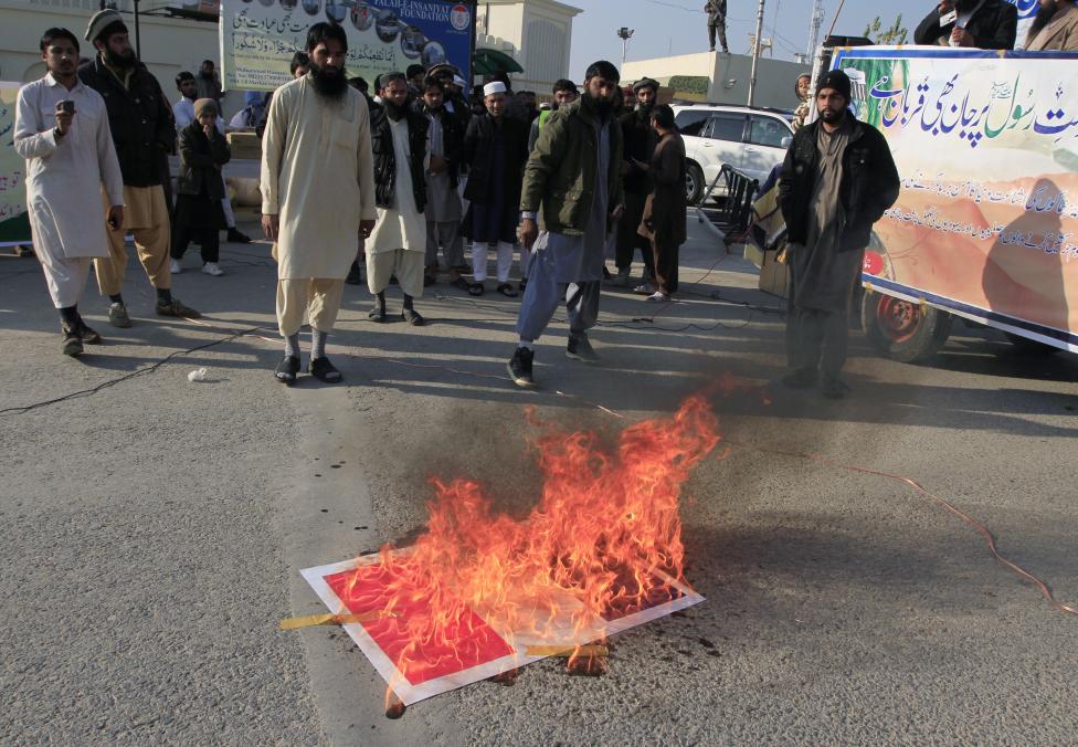 Supporters of the Jamaat-ud-Dawa Islamic organization burn France s flag during a protest against satirical French weekly newspaper Charlie Hebdo, in Peshawar - Reuters