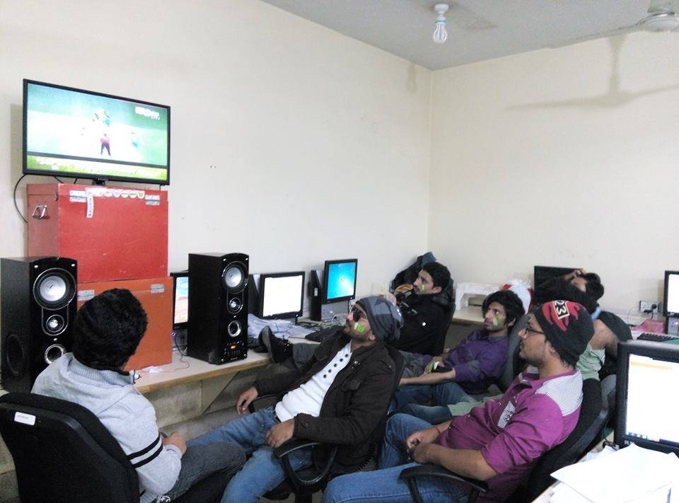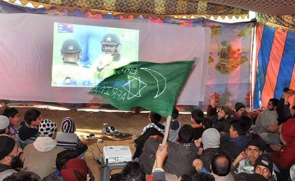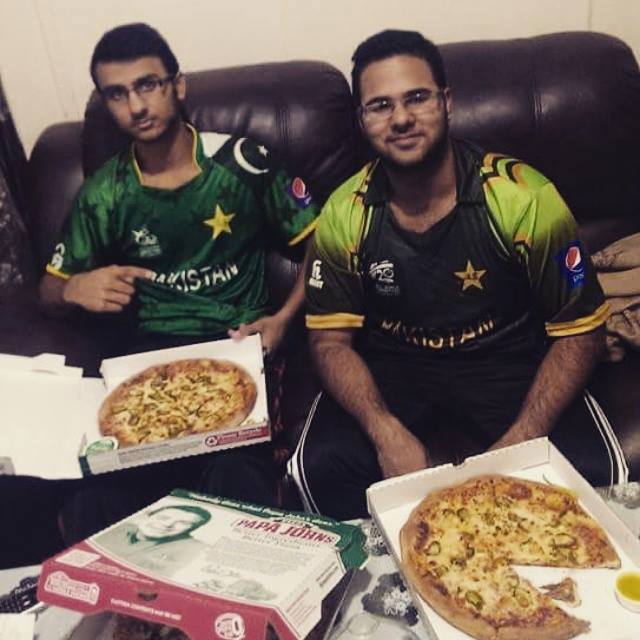 . Pakistani fans eating pizza while enjoying the match
