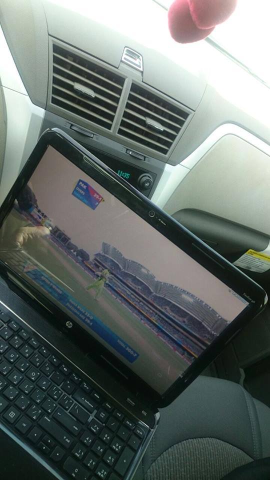 Watching match in car while going to office, from Saudi Arabia.