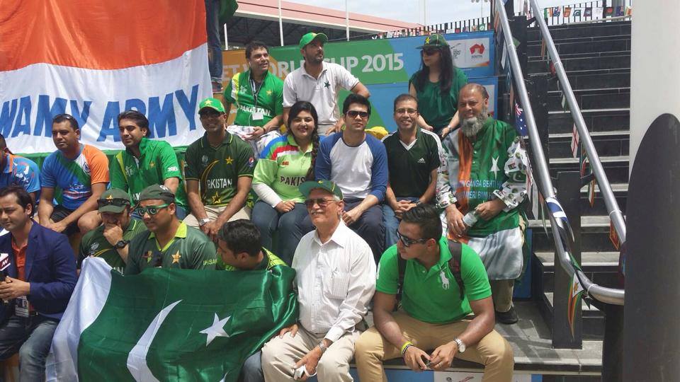 Fans dressed in Pakistani outfit enjoying the match.