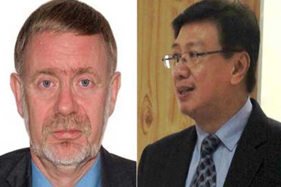 Norwegian envoy Leif H. Larsen (L) and Ambassador of Philippines Domingo D. Lucenario Jr (R) were killed in the crash.