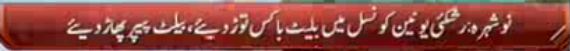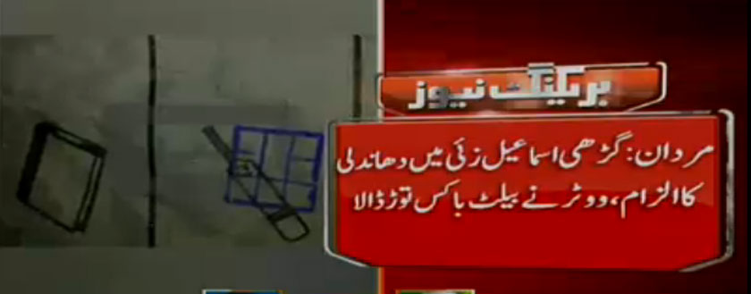 2:00 Rumpus at polling station number 2 in Rashkai UC of Nowshera. Workers of various political parties smash ballot boxes. Boxes had more than 200 votes.