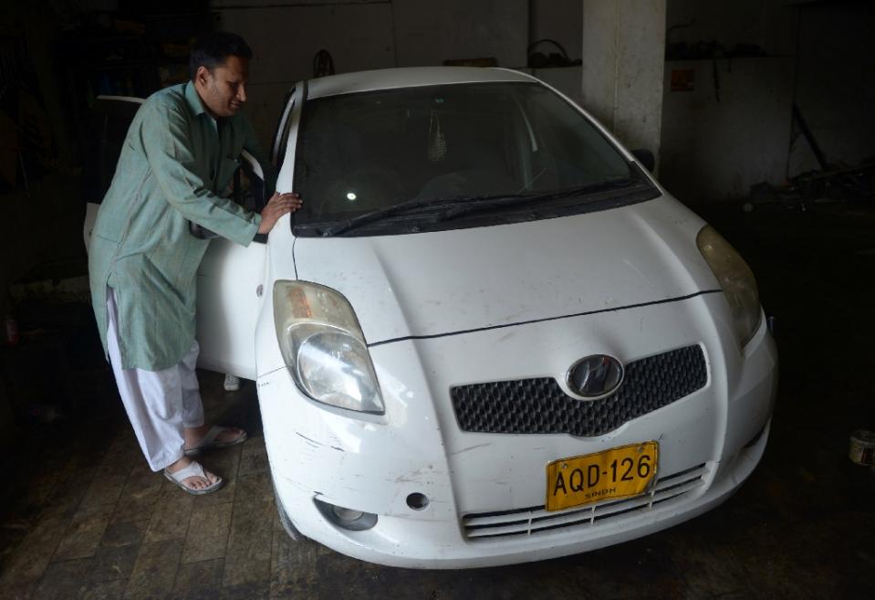 Blind mechanic Asif Patel checks a car at his workshop in Karachi (AFP Photo)