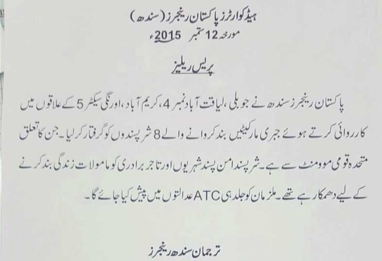 Rangers and police personnel are patrolling different areas since the morning. On the other hand, Rangers arrested at least eight culprits who were trying to shut down shops forcefully. The paramilitary force s spokesperson stated in a press release that all eight miscreants are MQM workers.