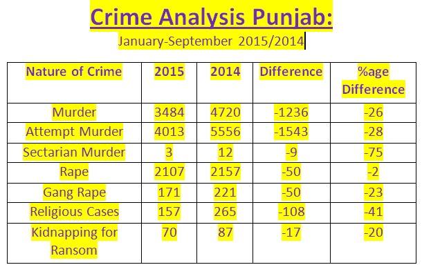 Dr Moeed Pirzada, Editor Strategic Affairs Dunya News, in his program proved with the help of crime figures obtained from Police organizations in Punjab, Sindh and Khyber Pakhtunkhwa that serious crime like murder, attempted murder, sectarian killing and gang rape has shown significant reduction in the first nine months (January to September) of 2015 as compared to the corresponding period of last year.