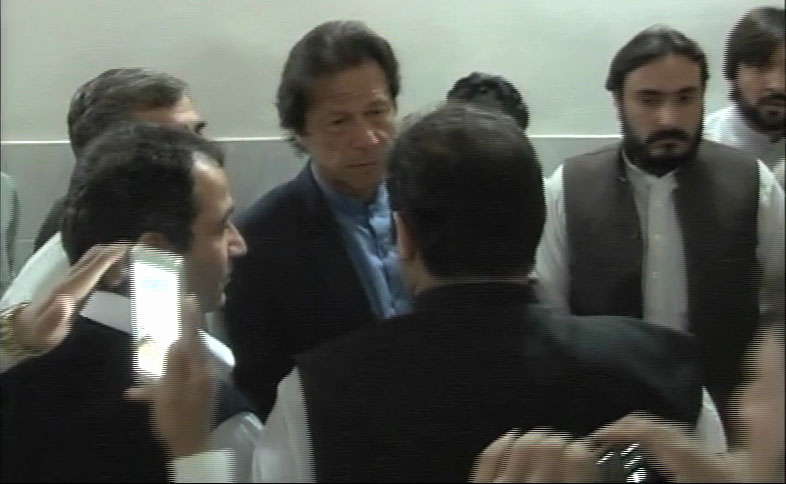 PESHAWAR (Dunya News) – Pakistan Tehreek-e-Insaf (PTI) chairman Imran Khan on Tuesday has paid visits to quake-hit areas and Lady Reading Hospital to review emergency situation and meet the injured.