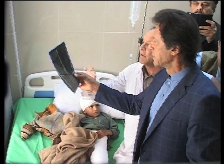Khan paid a visit to Timergara hospital later on and met the injured.