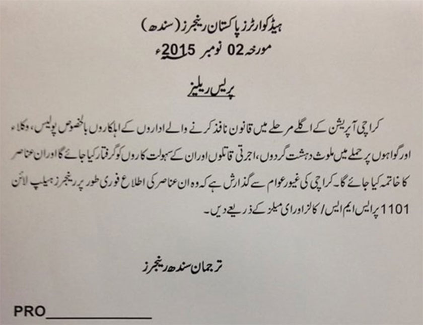 In a press release, the Sindh Rangers Spokesperson said suspects involved in attacks on LEA personnel "especially police, lawyers and witnesses" will be arrested and eliminated in the new phase of targeted operation.