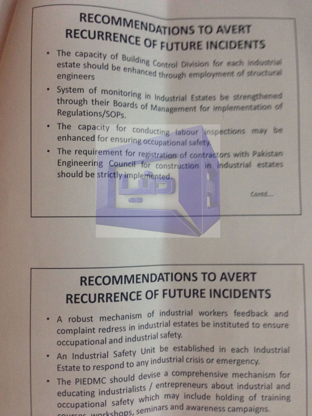 The report pointed out the reasons of collapse, as weak structure of the building and bad monitoring of engineering and construction. Industrial Building Regulation was also neglected while earthquake was another factor in weakening of the already bad structure of the building. The report requested the government to carry out the survey of all the industrial buildings of the province and setting up safety units for all industrial states. Here is the copy of report obtained by Dunya News:
