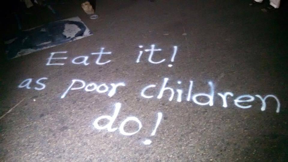 “Eat it! As poor children do,” said one of the signs near a pile of garbage on a street corner.