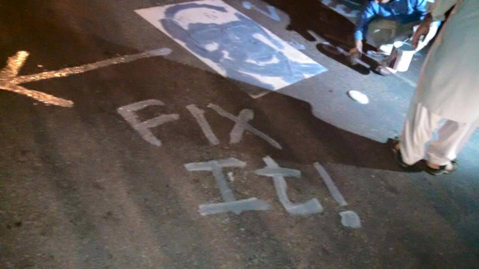 Khan accompanied by a team of supporters spray painted Sindh Chief Minister Qaim Ali Shah‘s face on the roads to bring attention to unattended issues around the city under the "Sleeping Beauty - please wake up" campaign.