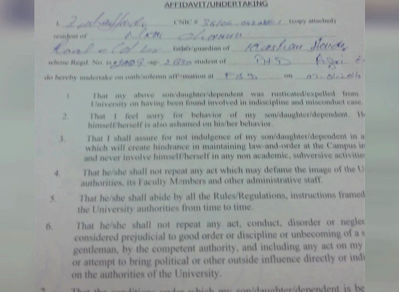 The move came after the submission of affidavit by Kashan in which he has assured of not violating the university laws in the future.