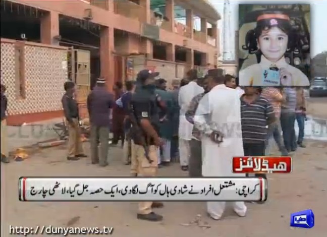 Summary In Orangi Town a dead body of a girl has been found, locals torched wedding hall’s furniture