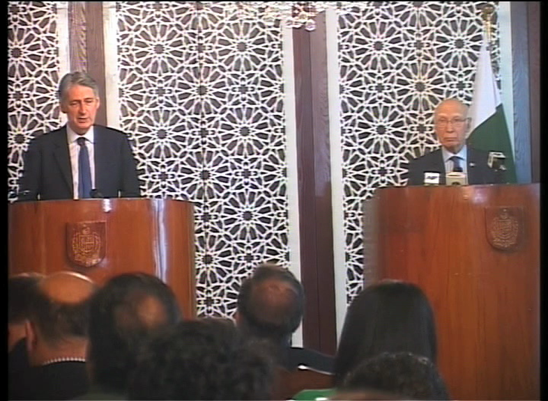 Sartaj Aziz and British foreign secretary address joint press briefing in Islamabad