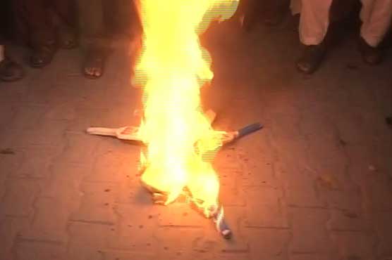 LAHORE (Dunya News) – Television sets were broken and bats set on fire as the nation’s cricket fans expressed their outrage and frustration over Pakistan cricket team’s loss against India in the WT20 match held at Eden Garden, Kolkata.