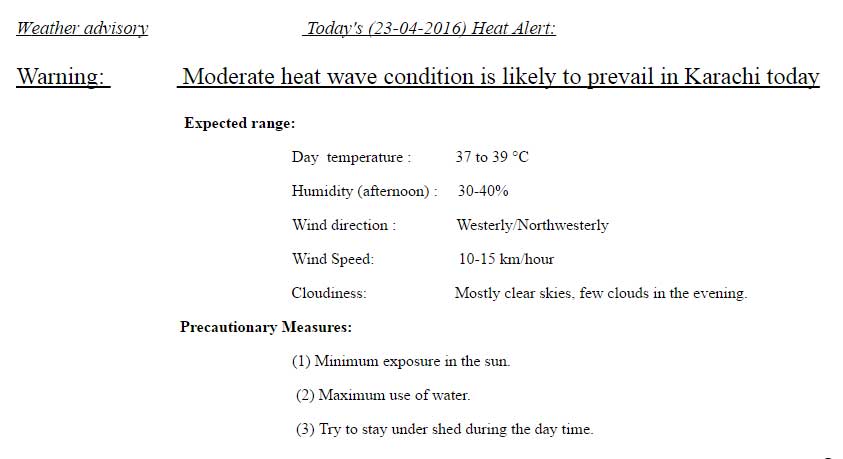 A WEATHER ADVISORY ISSUED BY PAKISTAN METEOROLIGCAL DEPARTMENT