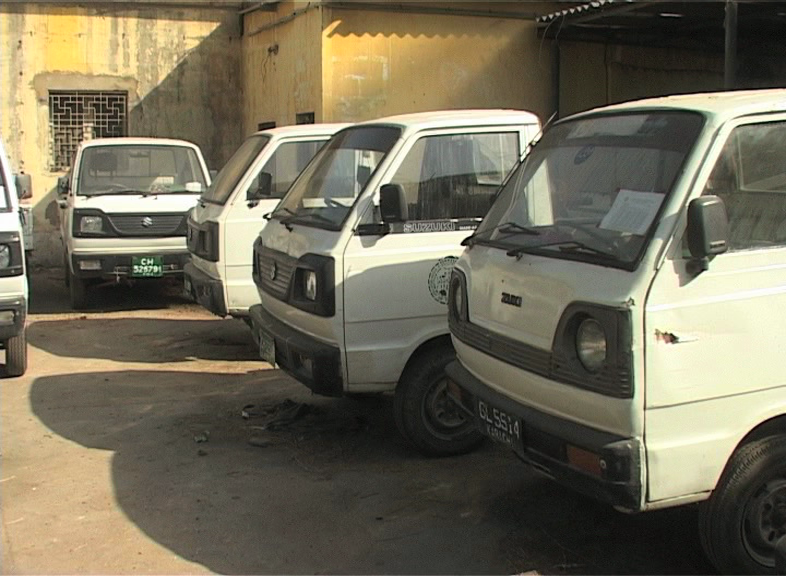 Vehicles parked at the head office after suspension of drive