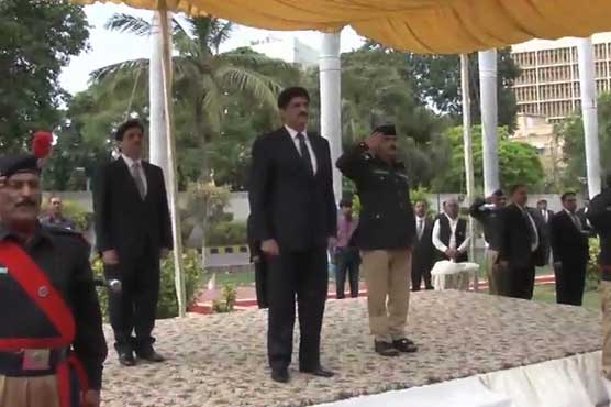 KARACHI (Dunya News) – Freshly appointed Chief Minister of Sindh, Murad Ali Shah was given guard of honour by police upon his arrival at the Chief Minister House, reported Saturday.