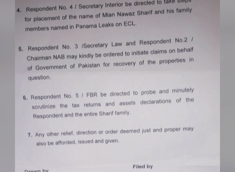 Summary Pakistan Tehreek-e-Insaf has named Nawaz Sharif and his family party in the petition