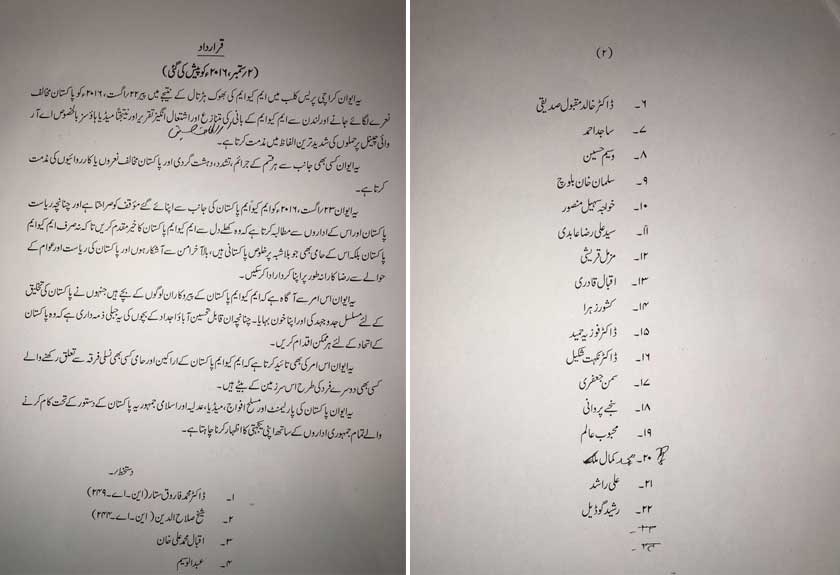 “This House condemns in strongest terms the raising of anti-Pakistan slogans and the incendiary and controversial speech of MQM founder Altaf Hussain from London and the subsequent attack on media houses in particular the ARY network,” states the resolution.
