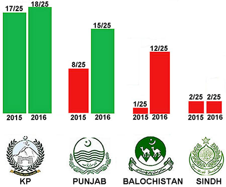 However, Balochistan bagged third position with positive rating of 12 out of 25 indicators.