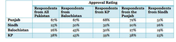 According to the report, governance in Punjab is rated the highest across nationwide respondents with 67% approval rating, followed by Khyber Pakhtunkhwa (KP) that stands at 38%.