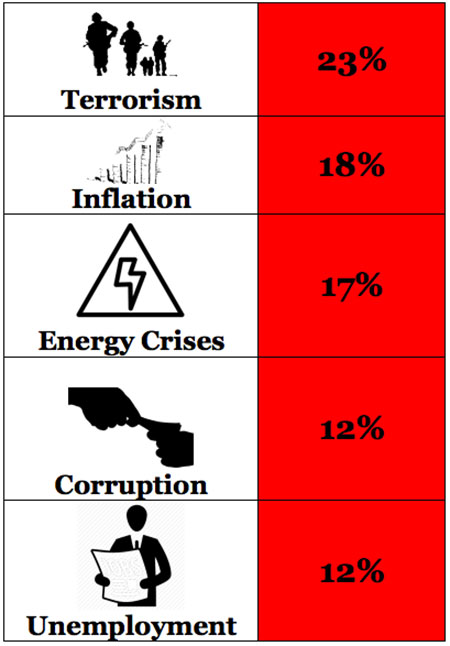 The respondents across the nation term terrorism as the biggest current issue followed by inflation and energy crisis.