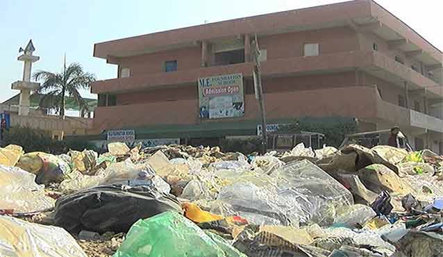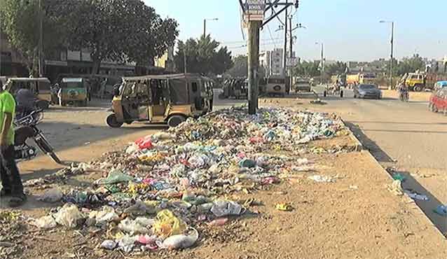 KARACHI (Dunya News) – With the “100 day cleanliness campaign” inaugurated by Karachi mayor Waseem Akhtar entering its third day, heaps of garbage can still be seen at areas where the campaign was kicked off.