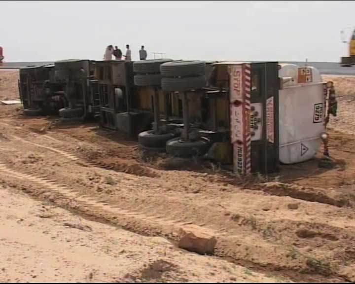 Summary The taker was going from Karachi to Moro when it overturned on its way.