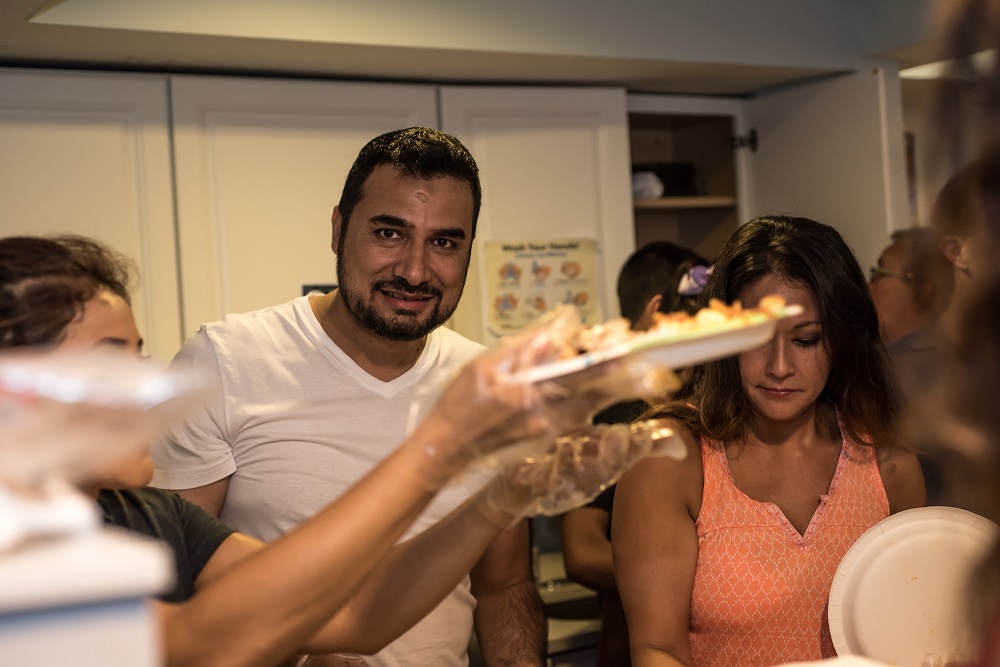 Resturant owner Kazi Mannan serving food at Georgetown Ministry Center. (Photo courtesy: street sense/insp.ngo)