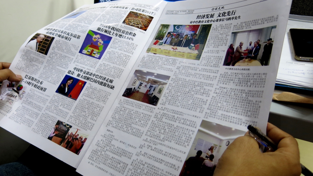 The Huashang Weekly, launched in early 2017, is Pakistan s first Chinese-language weekly and is aimed at Chinese migrants working on CPEC projects. Photo: Al Jazzera