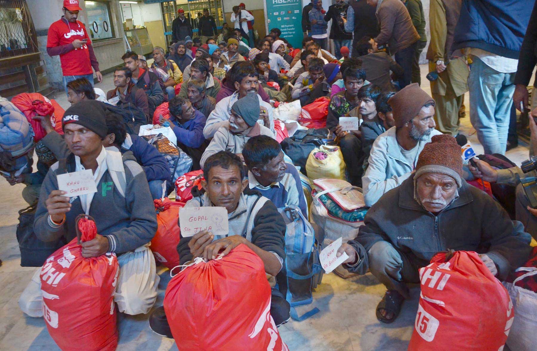 Summary Indian fishermen were released from a Karachi prison and transported to Lahore.
