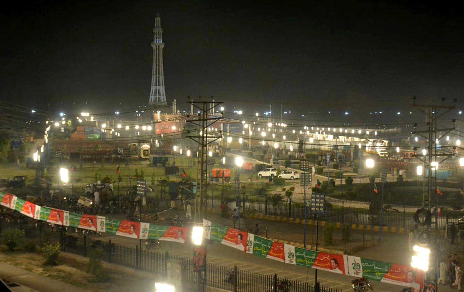 All the preparations for the public gathering have been completed. A 120 feet long and 60 feet wide stage has been set up for the party leaders who will address the public meeting including PTI chief.