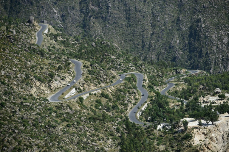 Hairpin bends snake through a tree plantation in Buner in northwest Pakistan. Photo: AFP