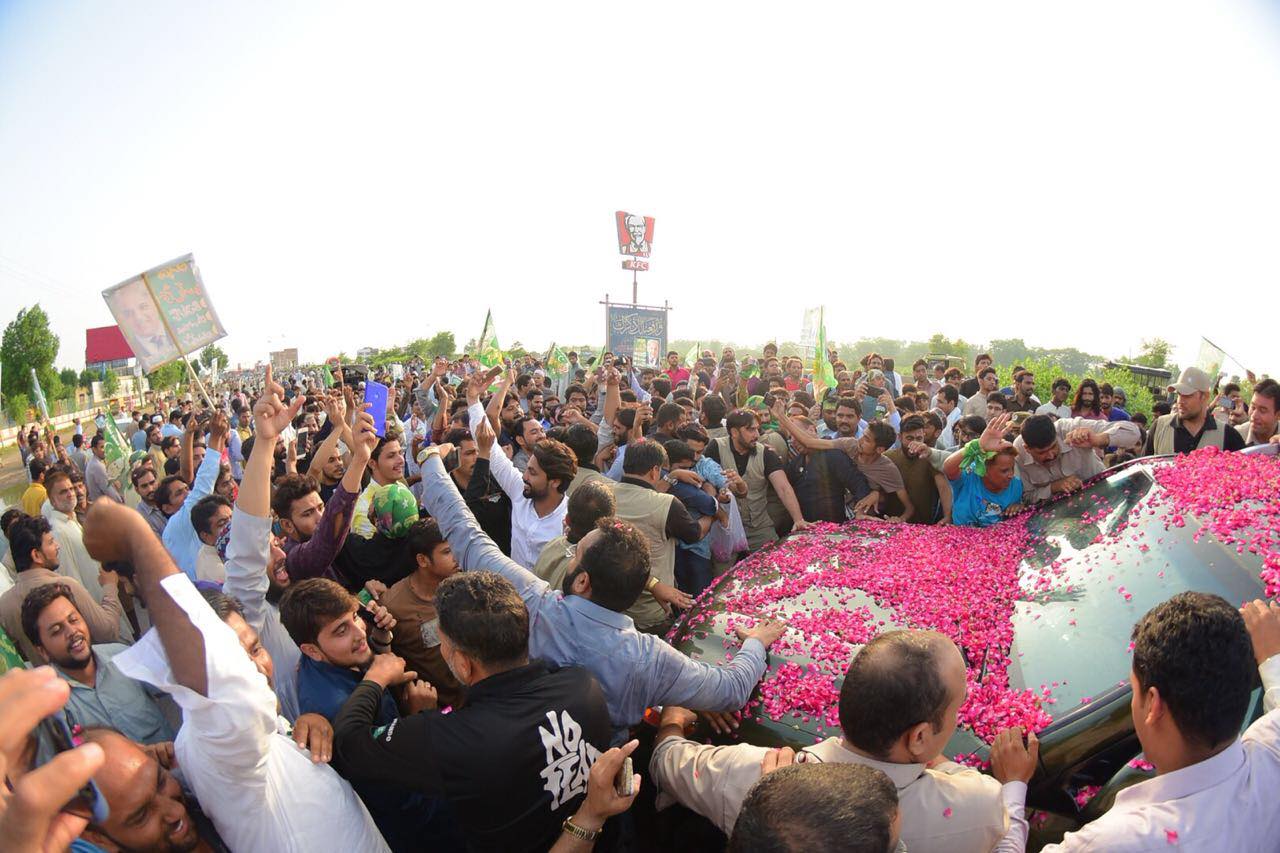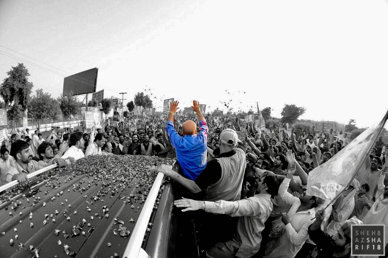 Earlier, Shehbaz Sharif was accorded a warm welcome by thousands of people when he made a stopover in Okara.