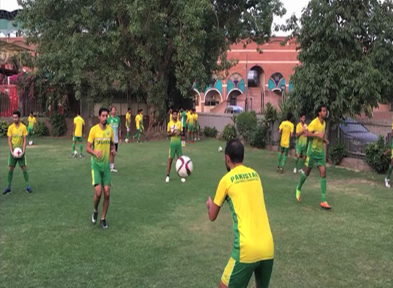 Lahore: Practicing National Football Players ahead of Asian Games. Photo: ScreenShot