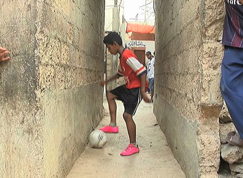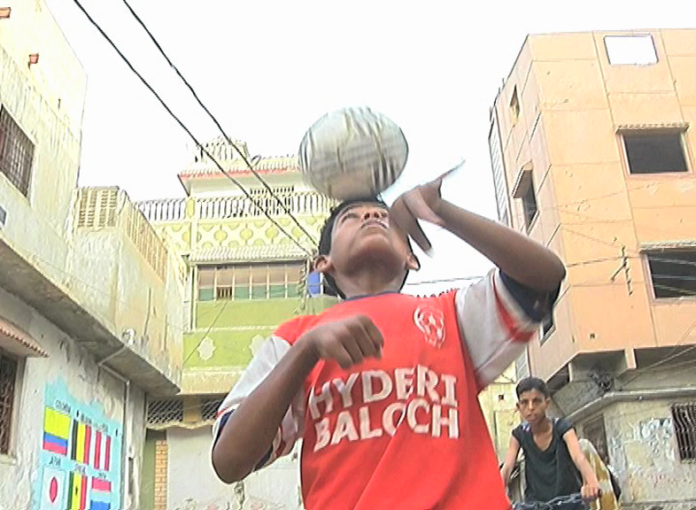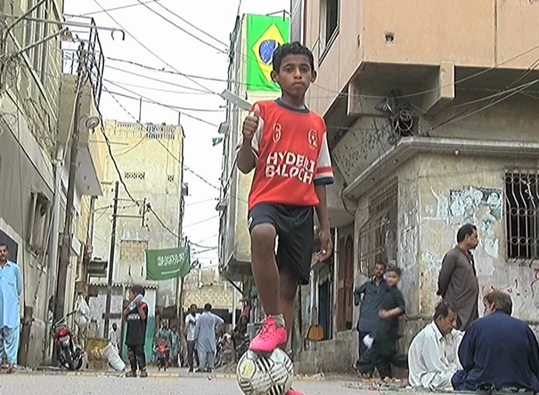 Azaan playing in the tappered streets of Lyari. Photo: Screenshot