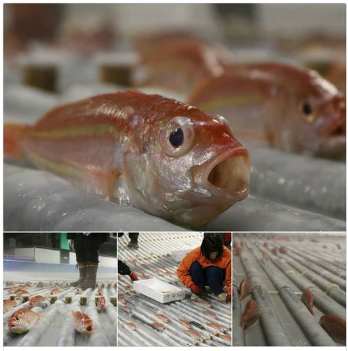 The rink in southwestern Japan opened on November 12, after 5,000 fish were frozen under the surface of the ice as a decorative effect while customers skated above.