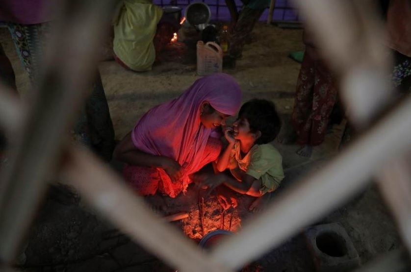 Rohingya refugees share a light moment as they cook dinner at the Balukhali camp. Photo: Reuters
