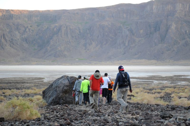 (AFP) - Gazing at a shimmering salt pan below, a group of first-time Saudi hikers descended craggy slopes into a volcanic crater, part of a hidden trove of natural wonders being promoted to kickstart tourism.