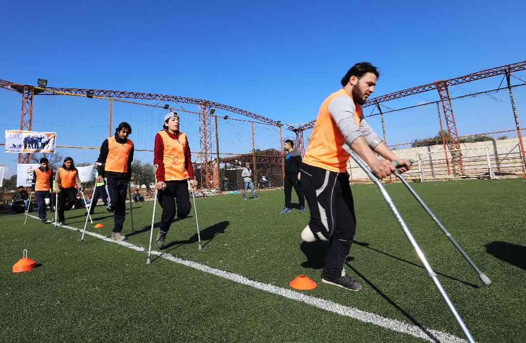 (AFP) – At the referee’s whistle, the young forward leans on his crutches and punts the football with his only leg, kicking off a match between war amputees in Syria’s battered northwest.